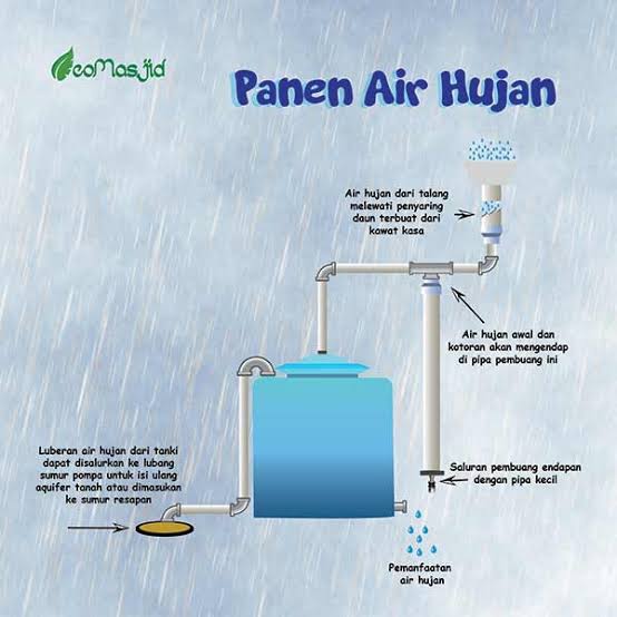 “Ada penyaring daun, penyaring debu kasar, penyaring debu halus.Ada pipa yang menyalurkan kelebihan isi tangki ke sumur resapan atau sumur langsung.Kalau sudah punya sumur tak perlu bikin sumur resapan, langsung masukkan ke sumur,” katanya.