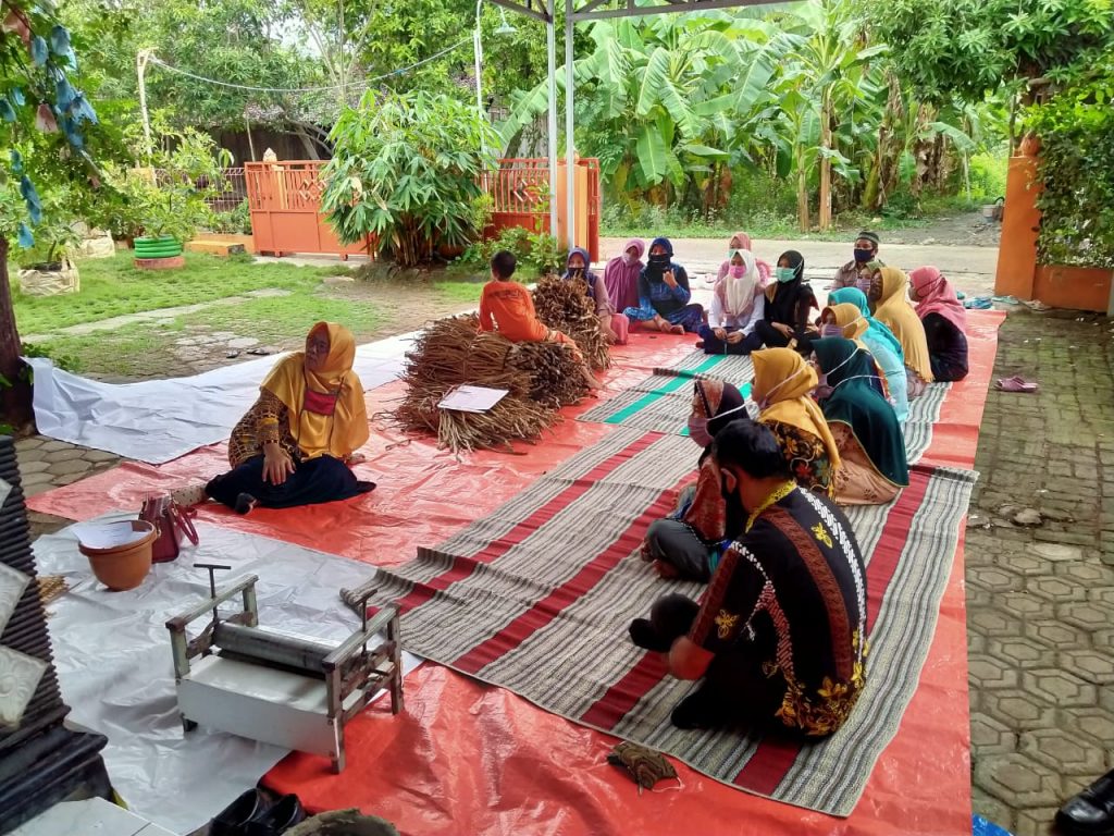 Pelatihan yang diberikan kepada peserta adalah pembuatan tempat sampah, Tempat tissu, tas besar/ kecil dan beberapa hasil olahan berbahan eceng gondok lainnya. Selama kegiatan berlatihan berlangsung peserta sangat antusias dalam mengikuti materi dan praktek yang di berikan narasumber dalam belajar pembuatan kerajinan eceng gondok. Diharapkan setelah mengikuti pelatihan ini, para peserta pelatihan dapat membuat produk rumah tangga dari eceng gondok dan mampu berdaya saing tinggi dengan produk – produk yang dibuat oleh industri sekala besar serta tentunya dapat menarik minat konsumen untuk membelinya.