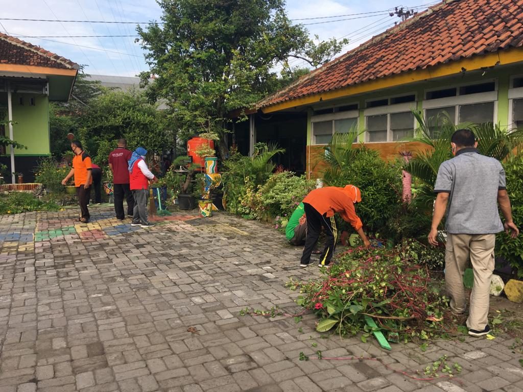 Melaksanakan kerja bakti di lingkungan kantor meski musim penghujan menghampiri. Tampak para jajaran saling bahu membahu membersihkan halaman dan kebun kantor, mulai dari memotong tanaman/rumput yang sudah memanjang, mencabut rumput liar, membersihkan kolam, menyampu halaman dan menata tanaman.