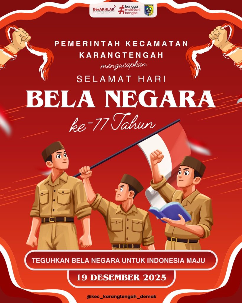 Pemerintah Kecamatan Karangtengah, Kabupaten Demak mengucapkan Selamat Hari Bela Negara ke-77.
